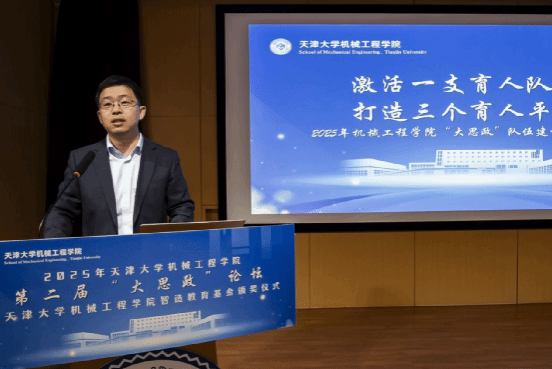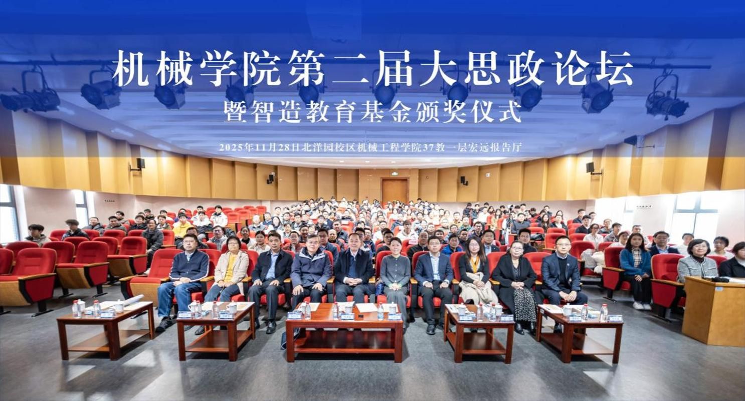 2025年11月28日下战书,机械工程学院正在北洋园校区37讲授楼宏远演讲厅举行第二届大思坛暨智制教育基金颁典礼。校党委杨贤金出席会议并讲话,首席员冯翠玲,校关工委副从任、机械工程学院关工委从任孙月海,党委教工部副部长王颖,以及学院党委孙涛、院长柯燎亮、副院长刘正先、副院长邓帅、关工委秘书长谭耕作出席勾当,取机械工程学院师友导师代表、学生代表200余人齐聚一堂,配合窗院思政育人工做的新取新景象形象。本次勾当由学院党委副林杰威掌管。