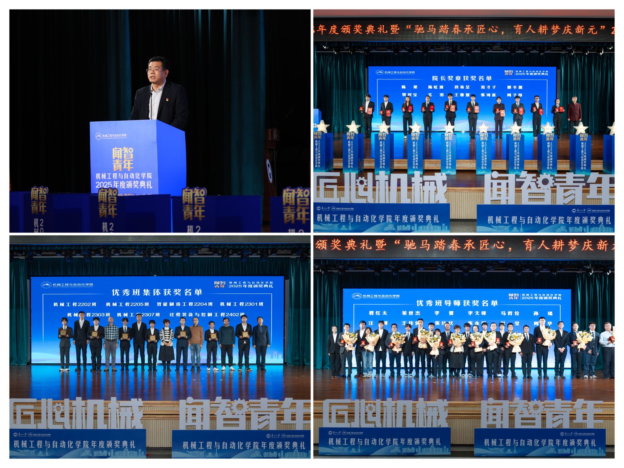 学院党委郝建山正在致辞中系统回首了一年来学院取得的主要成绩。学院积极办事国度计谋,投身深度金属矿智能开采纳配备全国沉点尝试室扶植,并正在环节科研范畴实现标记性冲破,获得国度严沉专项支撑。同时,学院成功引进增材取激光制制范畴领军团队,稳步推进学校新增学位点扶植,为久远成长奠基根本。正在人才培育方面,学院学子表示凸起,研究生学术丰盛,正在“挑和杯”“中国国际大学生立异大赛”等多项赛事中斩获国度级项,结业生就业率持续连结高位,展示了全面成长的优良素养。郝建山阐释了“闻智青年”品牌的育人内涵,勉励全体师生胸怀“国之大者”,过硬本事,怯于立异创制,勤奋成为担任平易近族回复大任的时代新人。副院长罗忠表扬决定。颁环节分三轮顺次进行。起首颁布的是“院长章”,刘云飞为毛羽等10名正在专业进修、科技立异、社会实践等方面表示杰出的学生颁布章。随后颁布“优良班集体”项,班导师代表为7个正在班风、学风及凝结力扶植中成效显著的班级颁。最初,仪式聚焦育人一线论理学生代表向获评“优良班导师”的教员们献上鲜花取荣誉证书,表达诚挚感谢感动。“院长章”获得者代表毛羽连系科研竞赛取意愿办事履历,讲述了“道阻且长,行则将至”的成长;“优良班集体”获代表豆煜轩分享了班级凝心聚力、共建优秀学风的活泼经验。正在“闻智匠心 共话青蓝”出格环节,优良班导师马哲伦取所带班级学生代表刘定佳同台交换,从分歧视角展示了师生间思惟引领、学业互帮、讲授相长的温情互动,彰显了育人一线的深挚交谊取结实成效。据悉,“闻智青年”是机械工程取从动化学院出力打制的文化育人品牌。也是典型树立、激励朝上进步的主要平台,旨正在指导全体学生以先辈为楷模,坚想、夯实专业根本、锻制立异能力,勤奋成长为具有家国情怀、全球视野取创制活力的杰出工程人才,为学校“双一流”扶植和高质量成长注入芳华力量。
